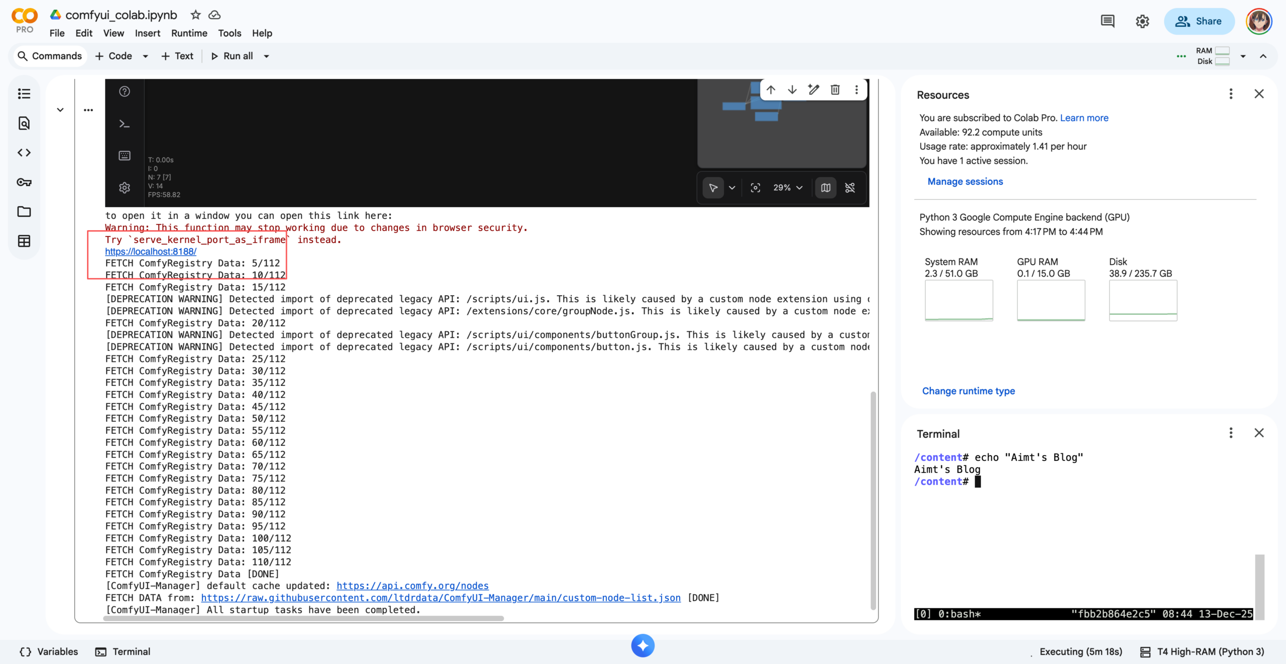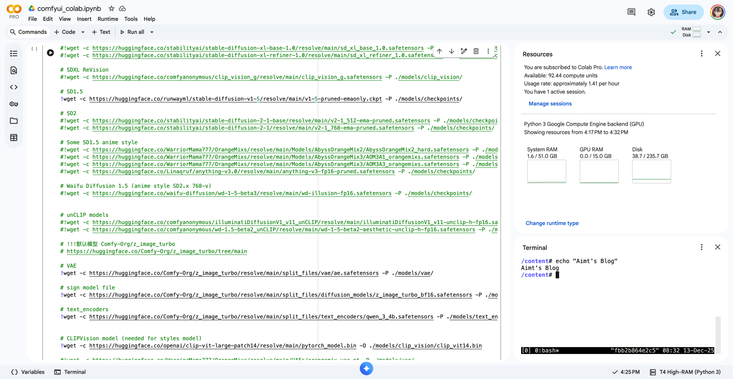 由于我在之前已经提前下载过了,保存到了Google Drive中,所以再次运行ComfyUI时无需重复下载。